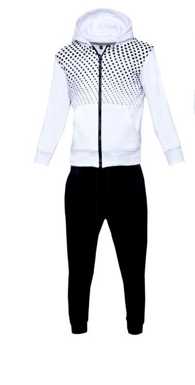 Kids White & Black Fleece Tracksuit – 280 GSM Cotton Face | Comfort Fit Zipper & Joggers