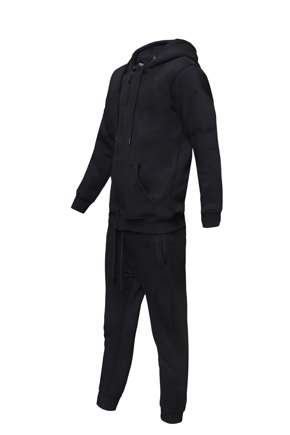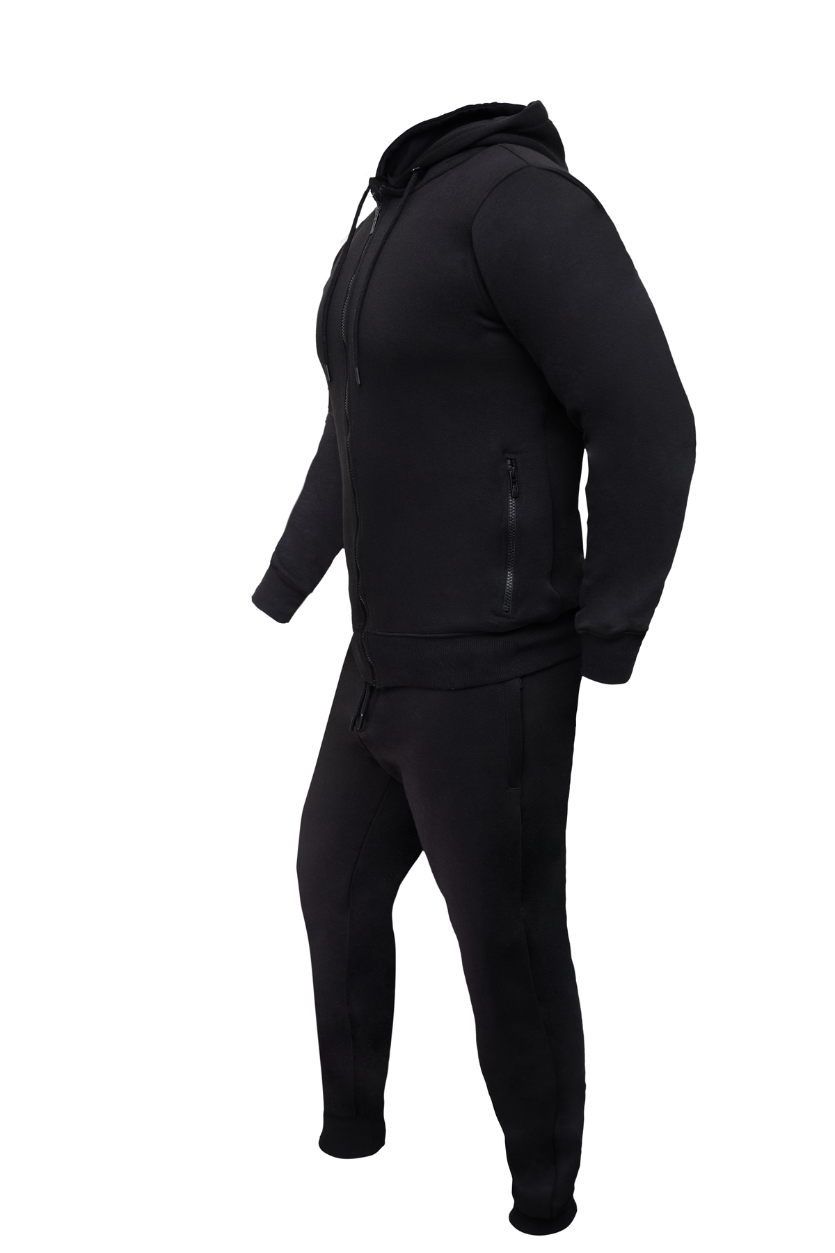 Men’s Black Zip-Up Tracksuit – 280 GSM Cotton Face | Zipper & Joggers Set